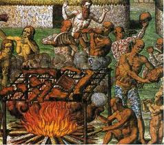 Quando Cristoforo Colombo, a cui si deve l’origine del nome (da CANI, CANNILI”,in spagnolo poi CANIB,CANIBALES,) sbarcò nella Nuova Terra,fu testimone di atti di cannibalismo,in uso fra i nativi locali