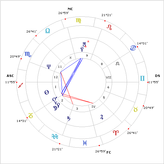 Nascere a casa dell’Ariete con il Sole, Marte e Plutone come coinquilini non è roba da poco…bisogna lavorare molto, imparare ad armonizzare con gli altri un Io Sono che richiede senza dubbio una grande attenzione nell’affermare la propria personalità,senza entrare in rotta di collisione con l’esterno. Prima casa della croce cardinale,impone l’agire costante verso l’obiettivo :si oppone alla settima Bilancia ,quadra la quarta,Cancro e la decima,Capricorno e questo la dice lunga sull’integrazione che deve essere raggiunta per arrivare a realizzare (10 casa) i suoi progetti ambiziosi. Un sole prima non deve mai dimenticare che per arrivare in alto ed essere riconosciuto per i propri meriti deve imparare ad armonizzare (Venere,7a) ,a gestire le proprie emozioni(Luna,4a),e a strutturarsi (Saturno,10a), dando a Marte una direzione precisa ed efficace.