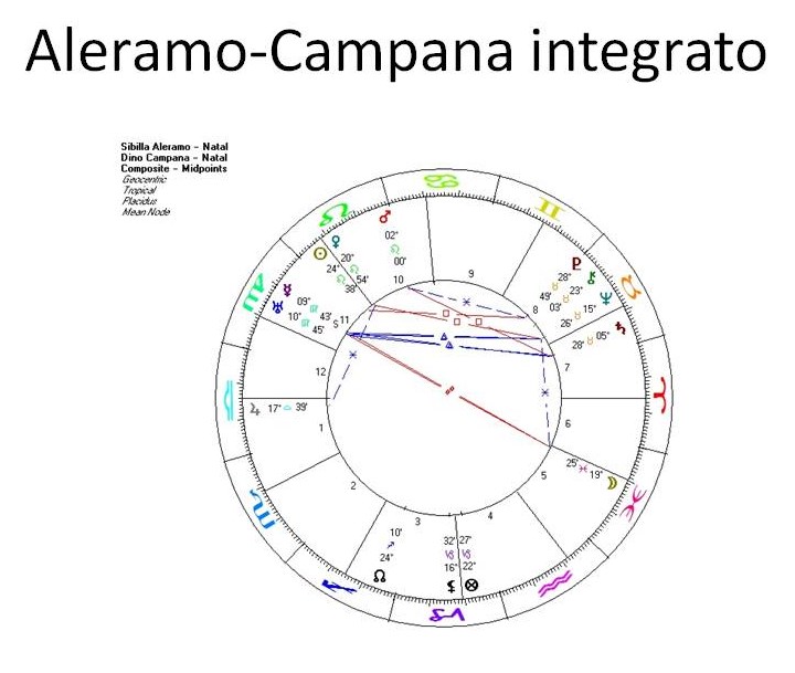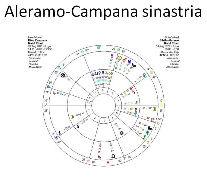 La scrittrice e il poeta, molto più giovane, ebbero un’intensa relazione. Nella sinastria troviamo Venere di lei su Marte di lui.
