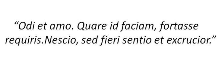 “Odio e amo, perché lo faccia forse tu me lo chiedi. Ma io non lo so, ma sento che è così e mi tormento”.