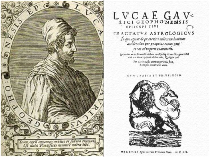 Nel “Tractatus Astrologicus”, il Gaurico segnala che Enrico II avrebbe potuto raggiungere l’età di sessantanove anni, dieci mesi e dodici giorni. L’astrologo, però, prima di lasciare Venezia il 30 luglio 1552, aveva inviato uno dei suoi Pronostici al duca di Ferrara, Ercole II d’Este e le sue previsioni, che riguardavano l’imperatore Carlo V, Ferdinando I d’Asburgo e il re di Francia, avvisavano che Enrico II avrebbe corso rischi viaggiando per acqua e andando a cavallo, con molte lacrime dal suo occhio sinistro: “Itinera tamen aquea videntur infausta et abequis nonnihil impedimenti et lachrimulis ex oculo sinistro fluentibus” (1). Pare che anche Gerolamo Cardano e un astrologo ebreo di Roma avessero fatto la stessa profezia, su richiesta di Caterina de’Medici, che notoriamente credeva all’astrologia ed era stata l’unica a inquietarsi per le previsioni del Gaurico.