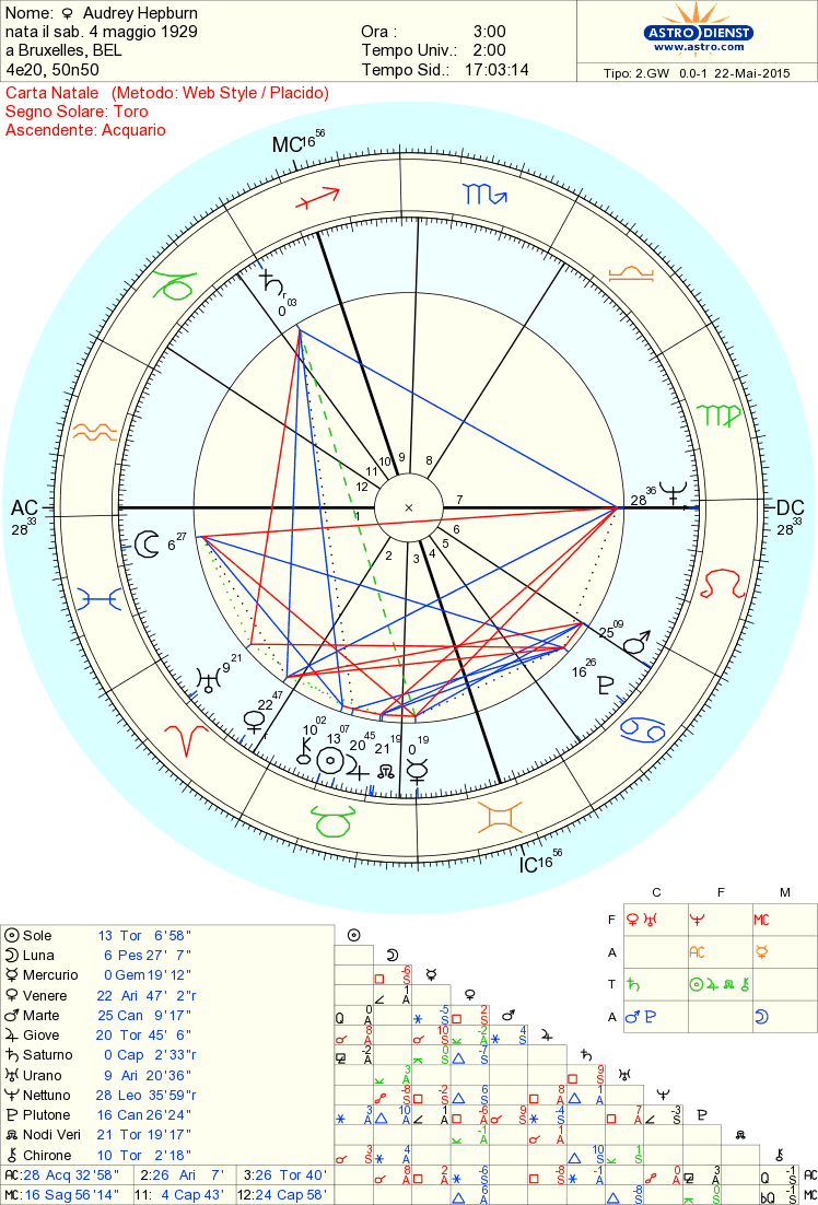 Quando Audrey accettò di far l’ indimenticabile “Colazione da Tiffany”….forse non immaginava di interpretare se stessa ..e nelle parole della mitica scena finale…ci sono tutti gli irrisolti della sua Luna Pesci 1a casa opposta a Nettuno in 7a…